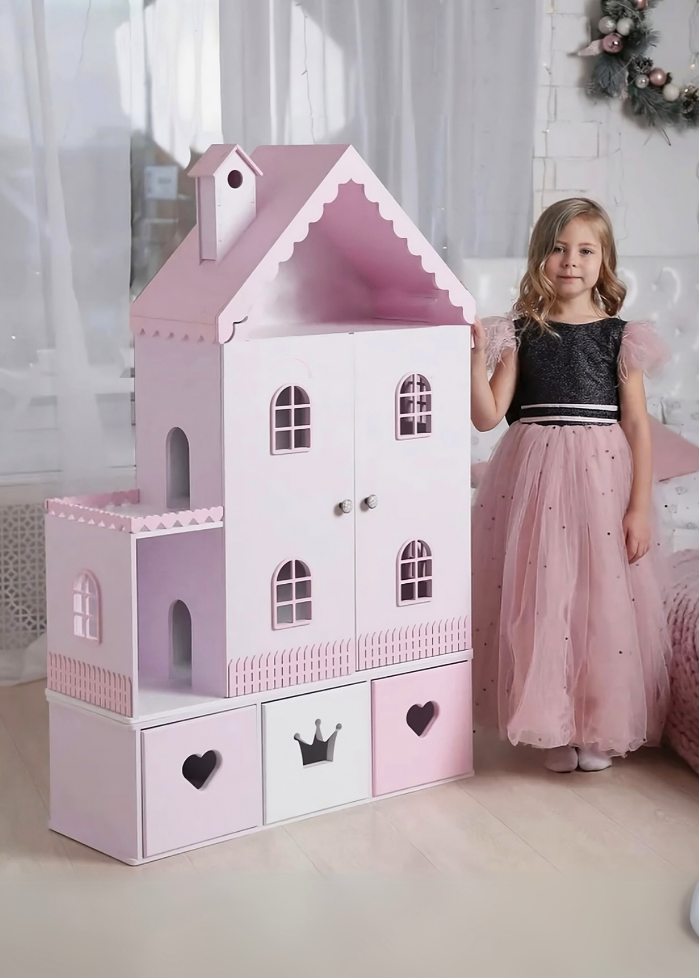 Haz que la imaginación de tu pequeña vuele con esta preciosa casita de muñecas, diseñada para brindar horas de diversión y creatividad. Con un diseño elegante en tonos pastel, detalles encantadores y amplios espacios, esta casita es el escenario perfecto para que las niñas creen sus propias historias mágicas.